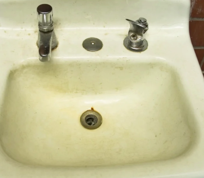 The mineral can discolour sinks and drains and leaves dark markings on water-using equipment.